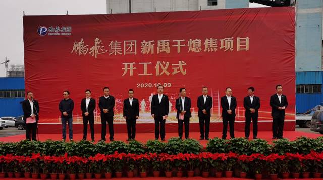 董事长徐列、副总经理宋明江及鹏飞集团执行总裁章晓东、运营总监谭映忠、副总裁-煤业总经理张选明、副总裁-供销总经理李洋、副总裁-财务总经理王子丽、副总裁-项目总指挥-工程项目总经理田振国、焦化总经理助理李秀廷、行政副总经理吕晓芳、焦化干熄焦项目总指挥郭逢光等参加仪式,鹏飞集团总裁助理马小龙主持仪式。