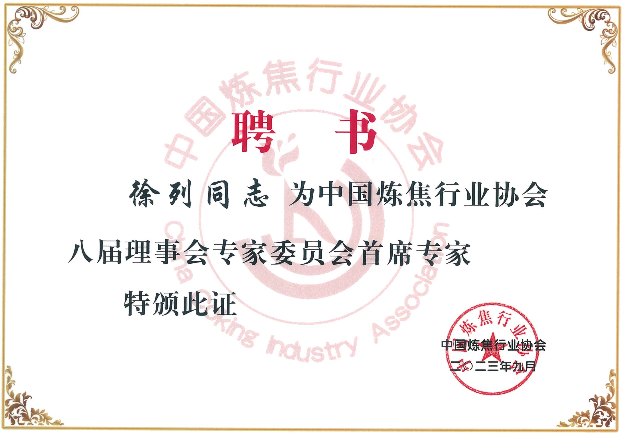 会上,董事长徐列再次被聘为中国炼焦行业协会专家委员会首席专家,总经理韩冬再次被聘为中国炼焦行业协会专家委员会专家。