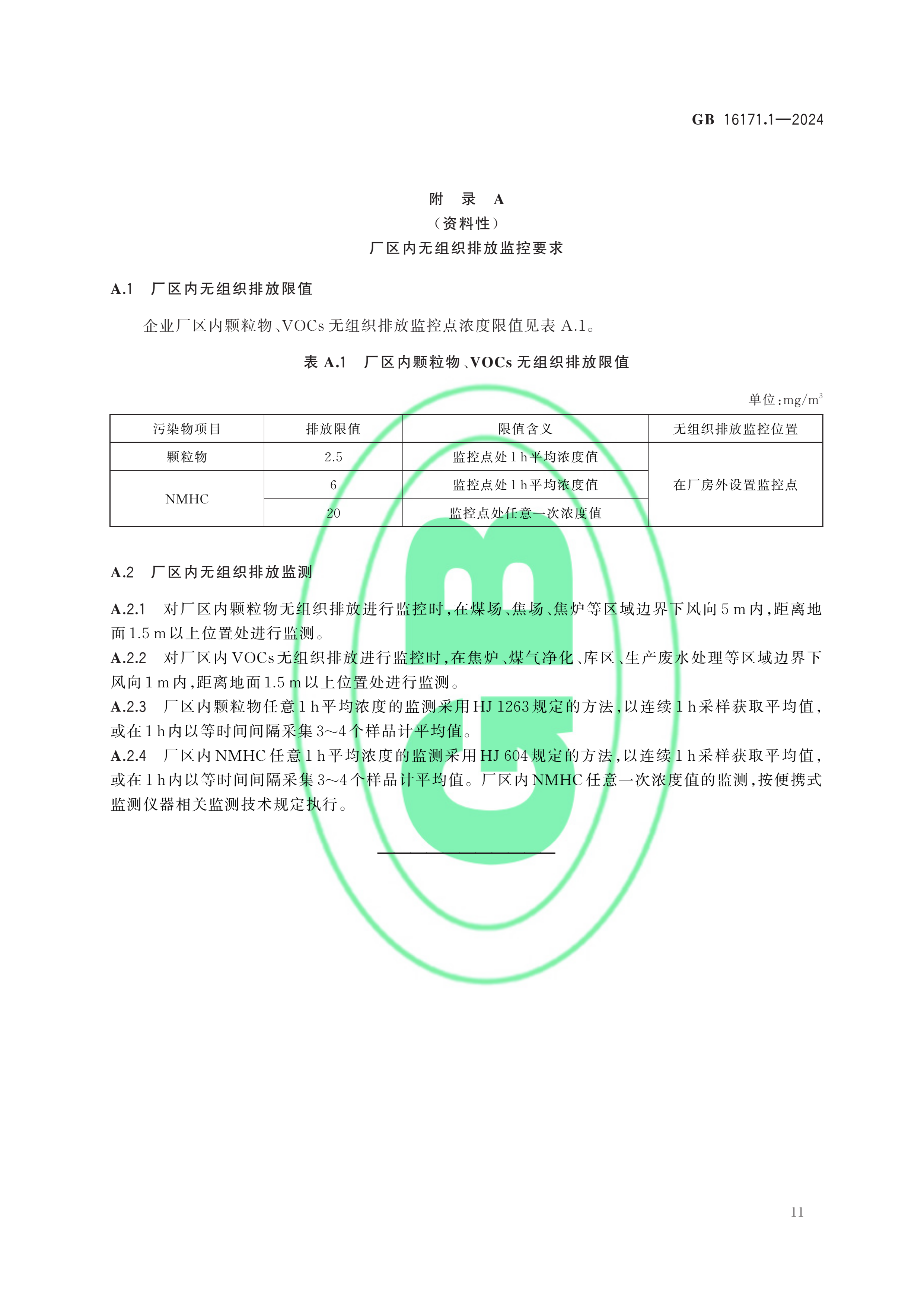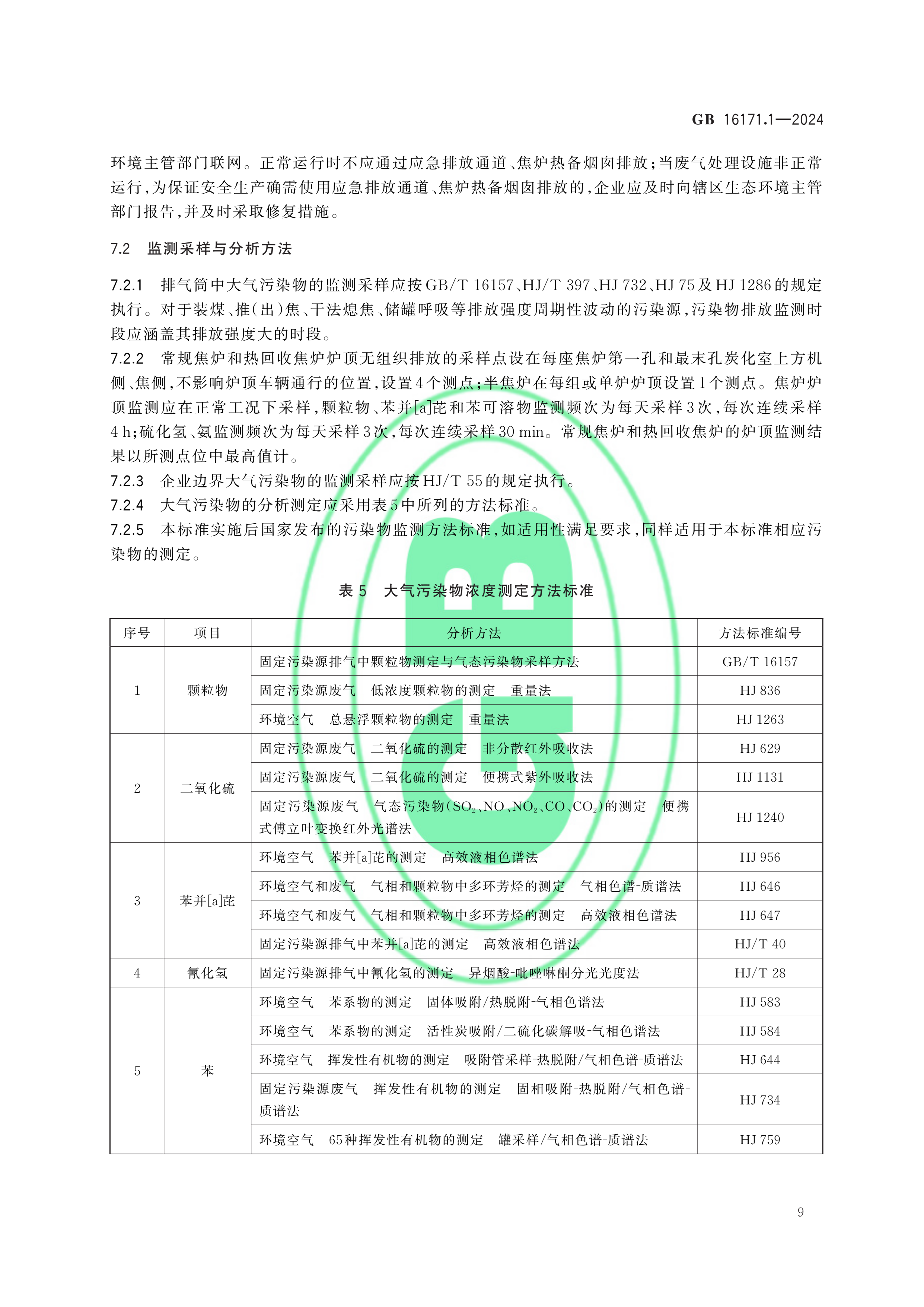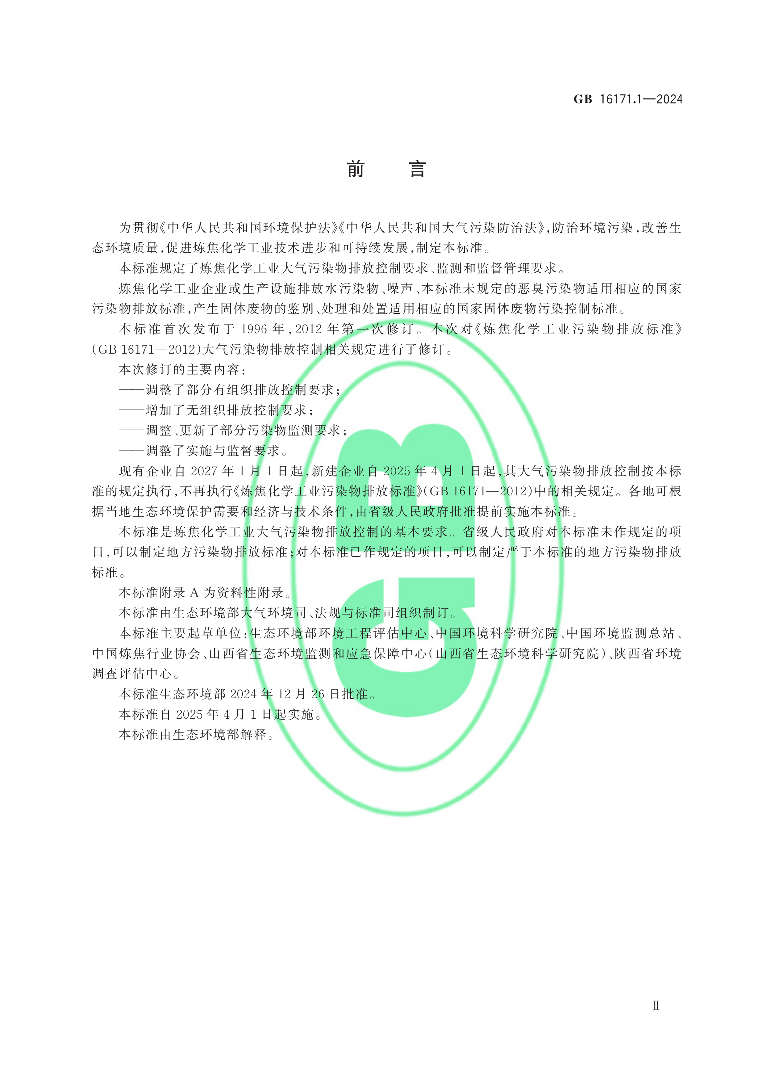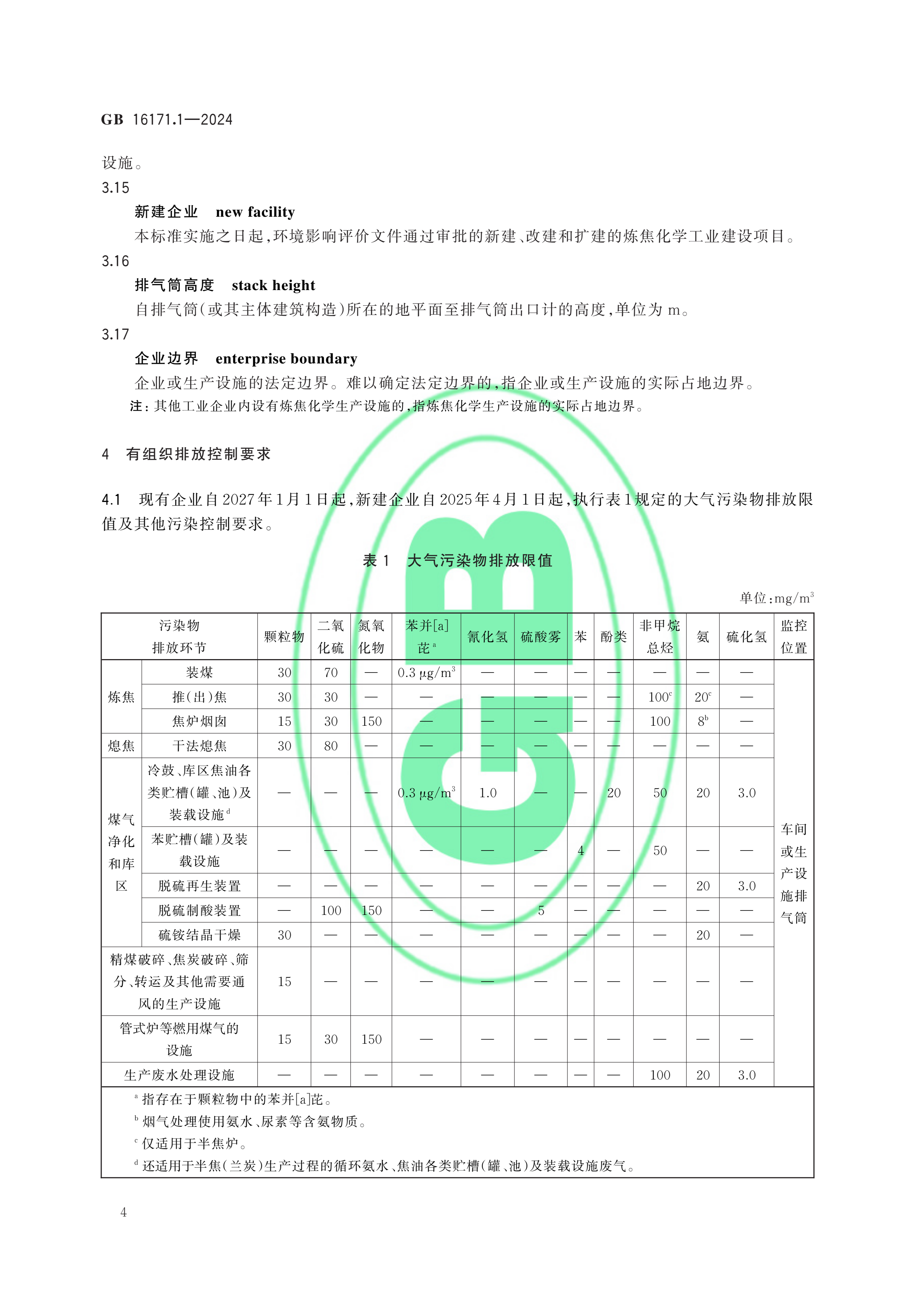 GB 16171.1-2024炼焦化学工业大气污染物排放标准